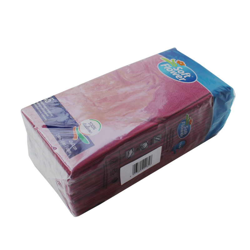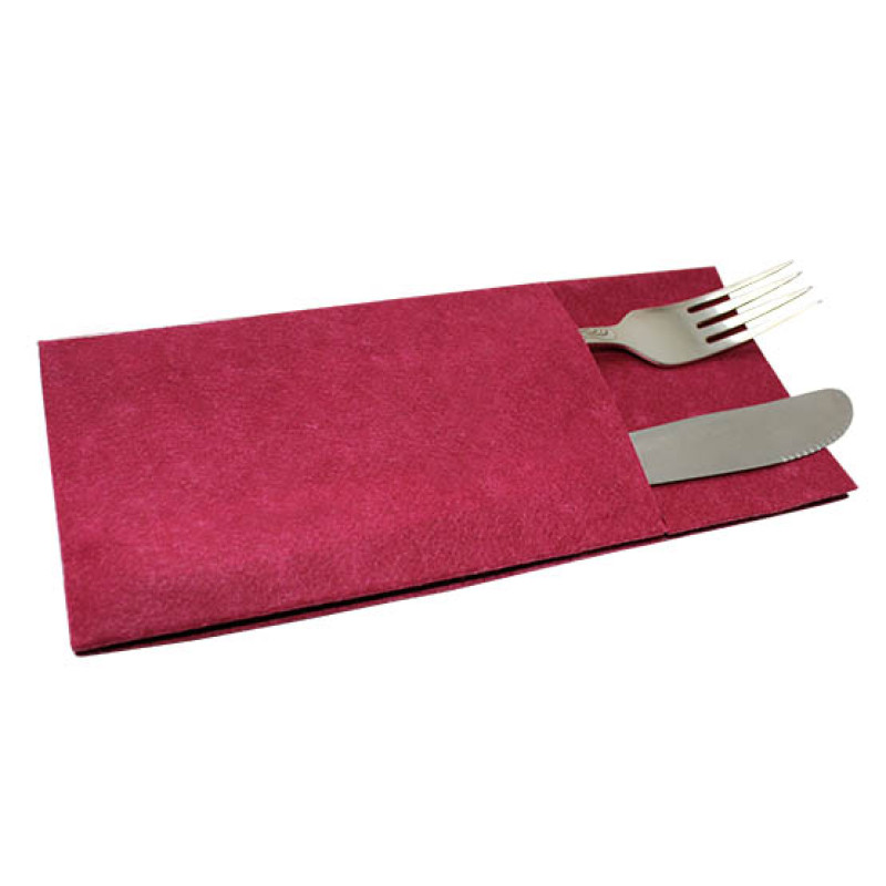 Паперові столові серветки Pocket виготовлені з двошарової 100% целюлози бордового кольору. Дуже м'які та ніжні. Виготовлені на сучасному італійському обладнанні. Призначені для красивого укладання столових приборів біля тарілки(куверта). У пачці 45 серветок, складка - 1/8.