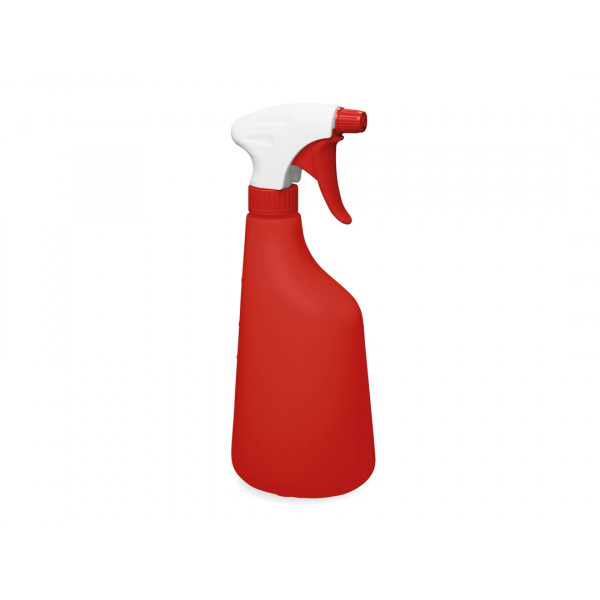 Пластиковий пульверизатор червоного кольору. Використовується для розпилу мийних засобів на різні поверхні. На пляшці є шкала в мл та %