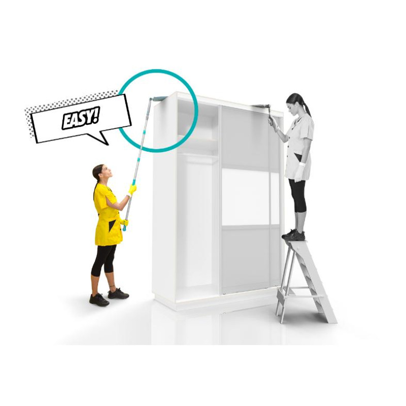 Система Lampo дозволяє швидко та легко кріпити пилососи та щітки до ручок або штанг, досягаючи високих поверхонь, водночас надійно закріплюючи їх під час використання.