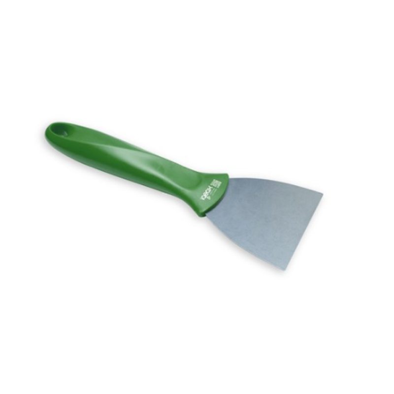 Скребок з лезом з нержавіючої сталі швидко видаляє наліт і бруд, що осіли на поверхнях. Незамінний партнер для обробки їжі та ідеальний для нарізання тіста. Оснащений отвором проти крапель для належного зберігання. Інноваційне маркування гарантує відстеження по всьому ланцюгу поставок. Ширина леза - 75 мм.