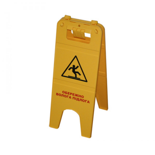 Призначений для позначення мокрої підлоги. Українсько-англійський.
