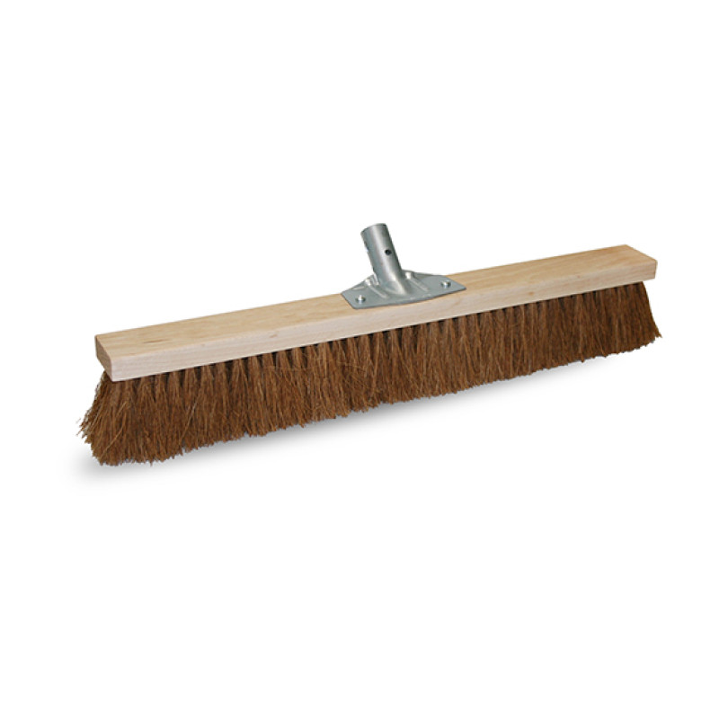 Ця щітка на дерев`яній основі зі щетиною з кокосового волокна використовується для підмітання промислової підлоги такої як асфальт, кварц, нерафінований бетон і т.п. З`єднання для рукоятки з отвором виготовлене зі сталі.