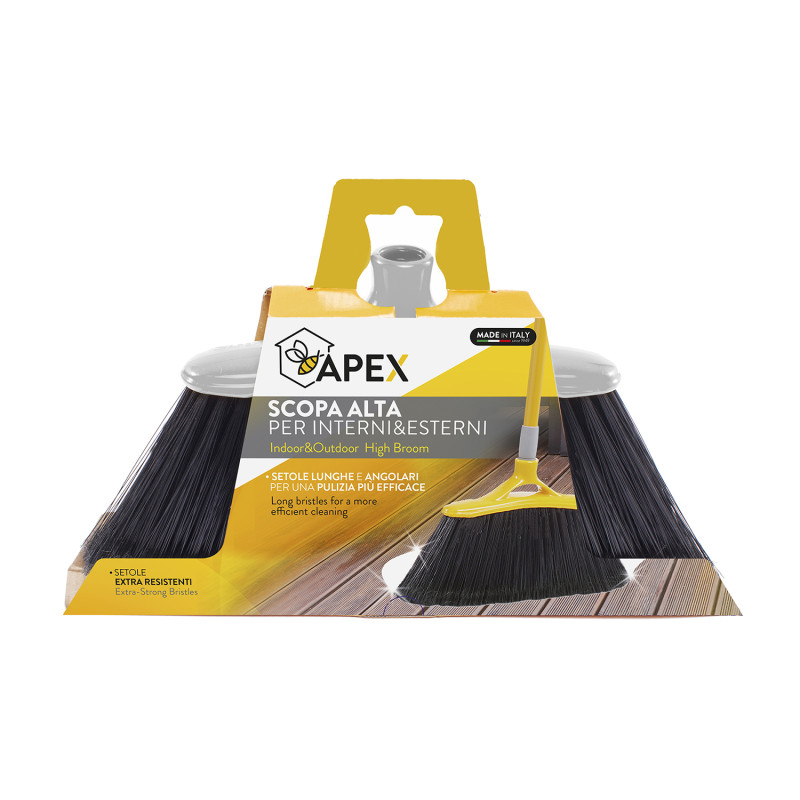 Щітка для прибирання підлоги зі щетиною з полівінілхлориду без рукоятки. Підходять рукоятки з різьбленням і діаметром 21-23 мм. Висота щетини - 11 см. Призначена для використання в приміщенні і на вулиці, з довгою, м'якою і міцною щетиною. Якість матеріалів, обраних Apex для своєї продукції, гарантує максимальну продуктивність і довговічність. Перевага продукту гарантується досвідом і компетенцією Apex в передових і найефективніших рішеннях для очищення.