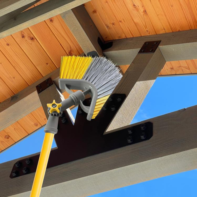 Трикутна форма та гнучка щетина очищають найважчі кути. Поворотна головка дозволяє дістатися до найнедоступніших місць без використання драбини. Проста у використанні та легка. Підходить до рукояток з різьбою.