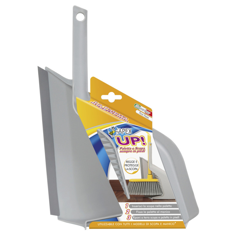 Крім того, UP! може бути встановленим і використовуватися з усіма типами мітел Apex, а також із більшістю мітел у продажу; він ідеально прилипає до підлоги, збирає бруд за один раз, а, завдяки своїй формі, забезпечує легке і безпечне переміщення бруду і швидке спорожнення.