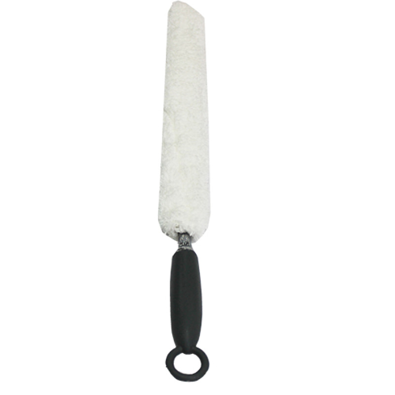 Простий економний віничок для зняття пилу у важкодоступних місцях таких, як батареї опалення, радіатори, конвектори. Ручка виготовлена із пластмаси, шубка - з білої мікрофібри.