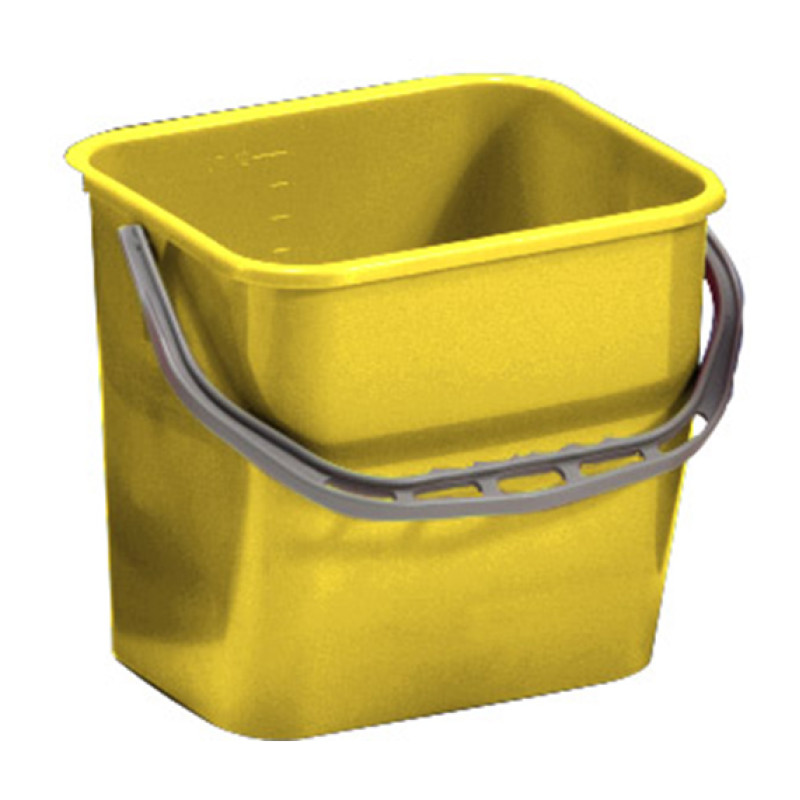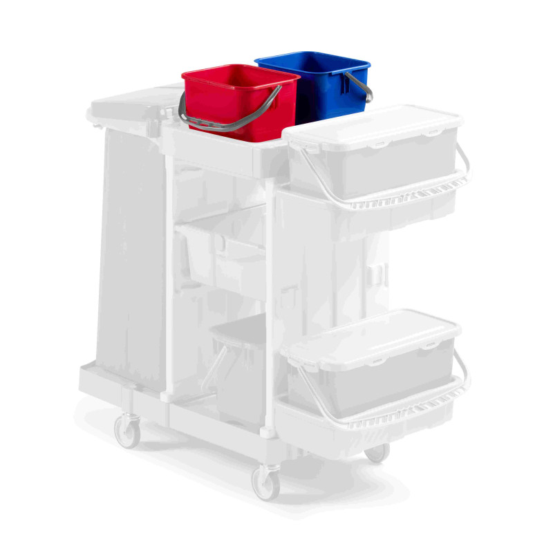 Відро об`ємом 12 л з одною ручкой для перенесення виготовлене повністю з пластику (моплен) і призначене для прибирання. Жорсткі ребра на дні запобігають швидкому зношуванню. Доступне у червоному, синьому, жовтому і зеленому кольорах. Зручне для професійного використання на прибиральних візках серії MAGIC LINE, GREEN LINE, MODULAR.