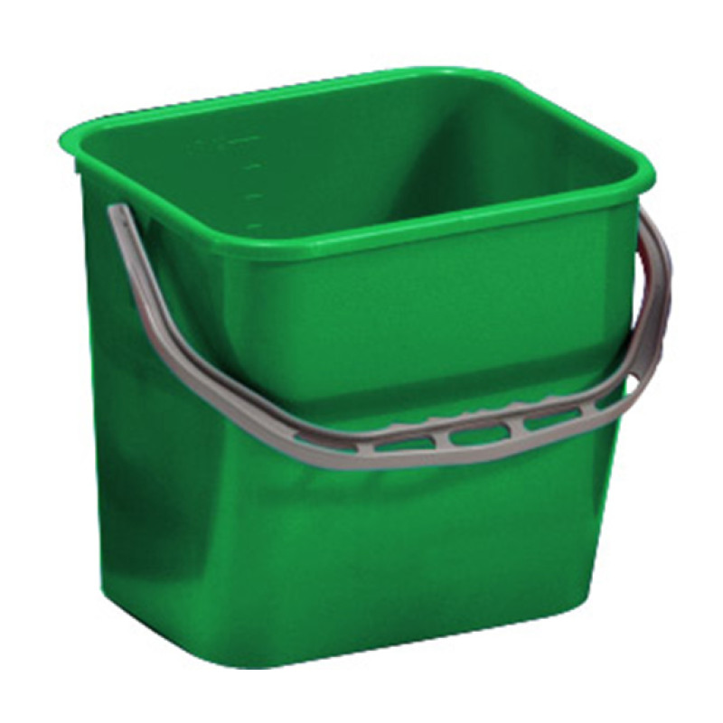 Відро об`ємом 12 л з одною ручкой для перенесення виготовлене повністю з пластику (моплен) і призначене для прибирання. Жорсткі ребра на дні запобігають швидкому зношуванню. Доступне у червоному, синьому, жовтому і зеленому кольорах. Зручне для професійного використання на прибиральних візках серії MAGIC LINE, GREEN LINE, MODULAR.