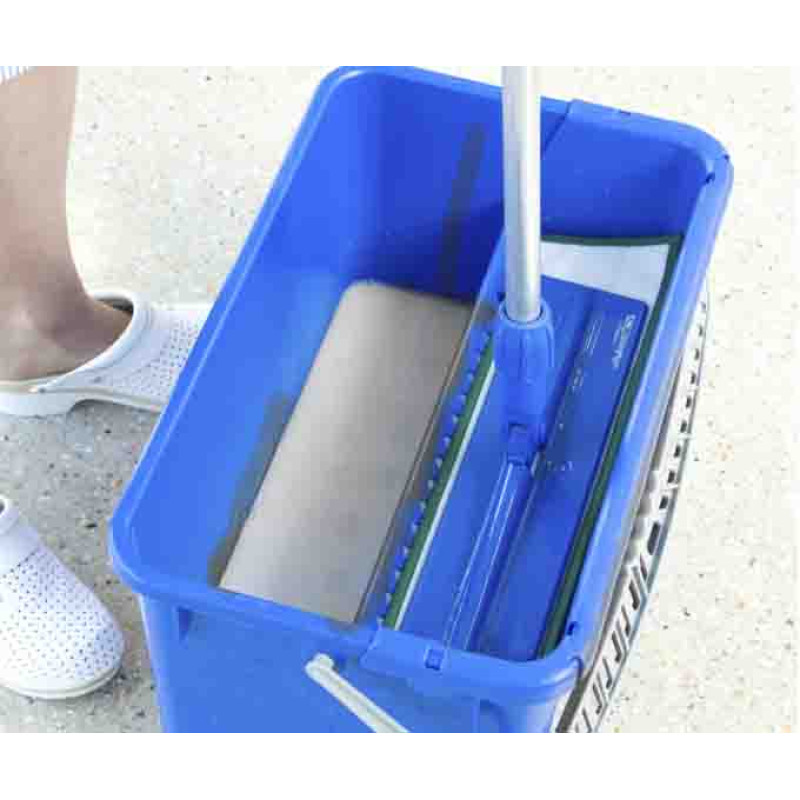 Повністю пластикове відро об`ємом 28л з ручкою. Зручно використовувати з віджимом арт. 3154 для миття вікон. Може використовуватись для різних прибиральних систем, є можливість прикріпити 4 колеса діаметром 50 мм арт. 3484 і перевозити розчини за допомогою герметичної кришки арт. 3241. Всередині відра є шкала поділок у галонах і літрах.