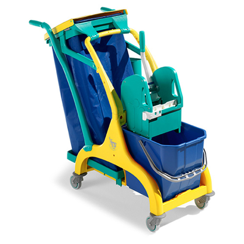Сучасний дизайн. Унікальний у своєму роді візок має невеликий розмір, маневрений, легкий і може вмістити велику кількість різних аксесуарів для прибирання невеликих приміщень: підмітання і миття підлоги, прибирання пилу, миття скла. Всі компоненти візка виготовлені з поліпропілену, складається з бази з колесами Ø80 мм і бамперами, відра 15л, тримача мішка 120л, віджиму TEC. Мішок до комплекта не входить.