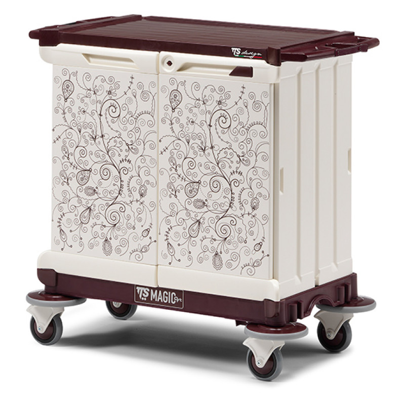 Візок готельний MagicArt ANTHEA 200R-02 можна придбати за попереднім замовленням. Пропонується для обслуговування 8/10 готельних номерів. Графічний малюнок- ANTHEA. Всі дверцята замикаються на ключі.