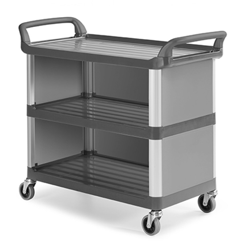 Візок виготовлений з поліпропіленових полиць і алюмінієвих стійок, має 4 колеса діаметром 100мм. Верхні і нижні рівні закриті стінками. Максимально допустиме навантаження на кожну полицю - 50 кг.