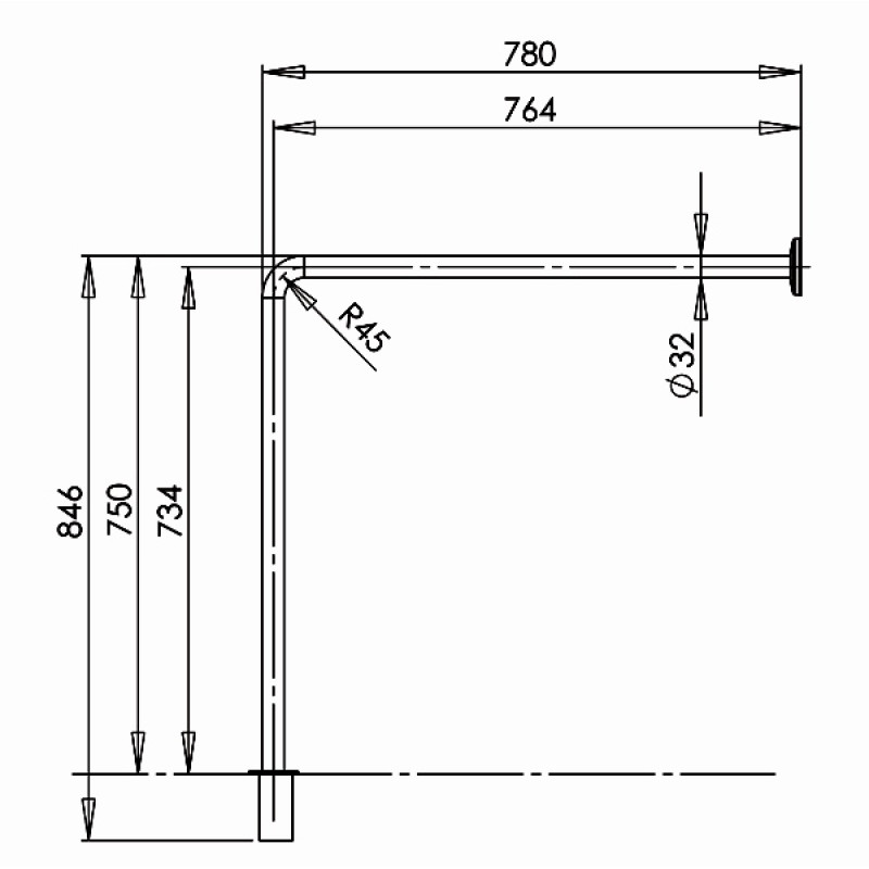 Поручень для осіб з інвалідністю (Г-подібний) стіна-підлога встановлюється у громадських ванних і туалетних кімнатах. Виготовлений в антивандальному виконанні. Матеріал - нержавіюча сталь AISI 304 із сатинованим оздобленням.