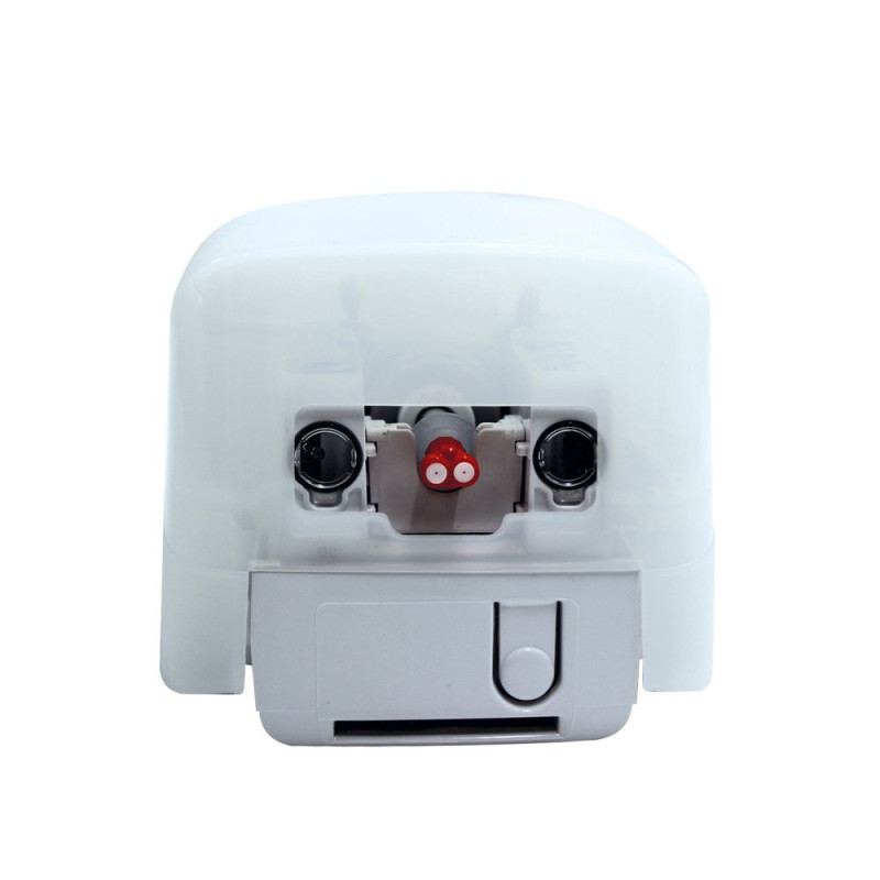 Дозатор для дезінфікуючого засобу наливний - бюджетний варіант, виготовлений з міцного пластику ABS білого кольору. Напівпрозорий пластик на передній частині пристрою допомагає визначити рівень рідини.