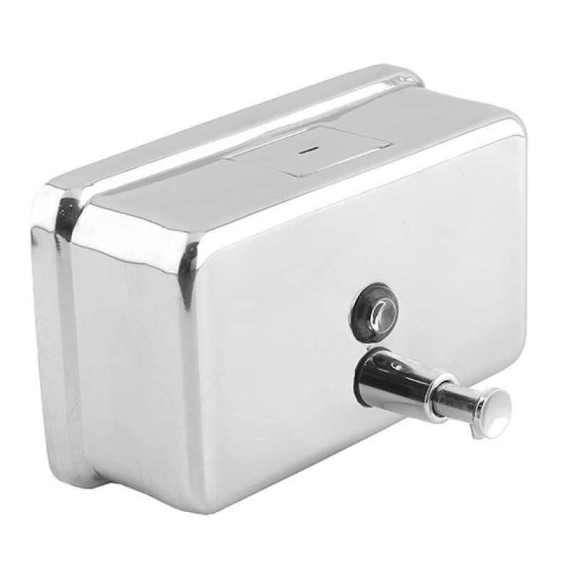 Горизонтальний дозатор у сучасному дизайні простий і комфортний в роботі, з надійною насосною системою, що виключає протікання. Тип керування механічний. Антивандальний корпус виготовлений з нержавіючої сталі AISI 304, оздоблення глянцеве.