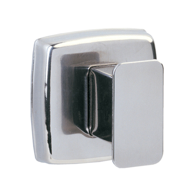 Гачок металевий (одинарний) виготовлений з нержавіючої сталі AISI 304 із глянцевим оздобленням, що робить його поверхню більш стійкою до подряпин і пошкоджень. Характеризується довговічністю і надійністю, простий у догляді. Кріплення на стіну. Габаритні розміри – 52х52х41 мм.