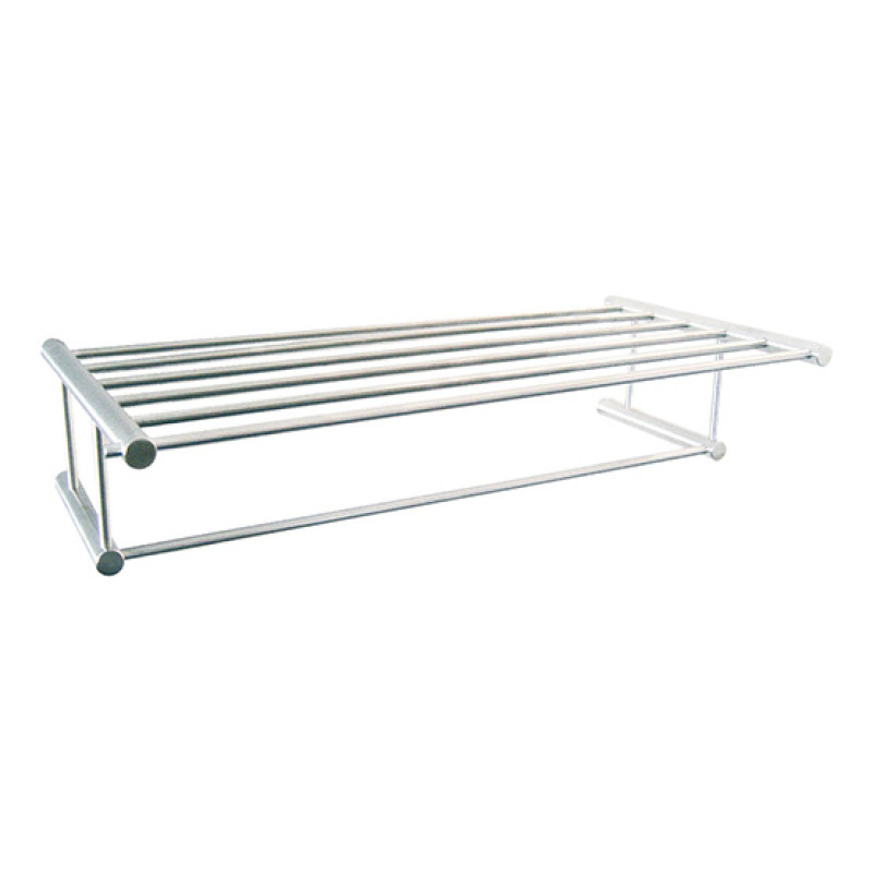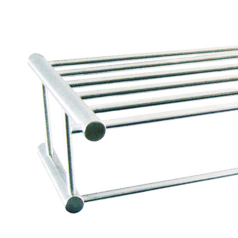 Полиця-тримач для текстильних рушників виготовлена з нержавіючої сталі з глянцевим покриттям марки AISI 304 товщиною 0,8 мм. Підходить для оснащення ванних кімнат в готельних номерах. Не має роз`ємних частин. Сама полиця складається з 6-ти планок, Повністю зварна конструкція. Монтується на стіну за допомогою 4-х саморізів, які входять у комплект. Тримач рушника знаходиться на відстані від стіни на 260 мм.
