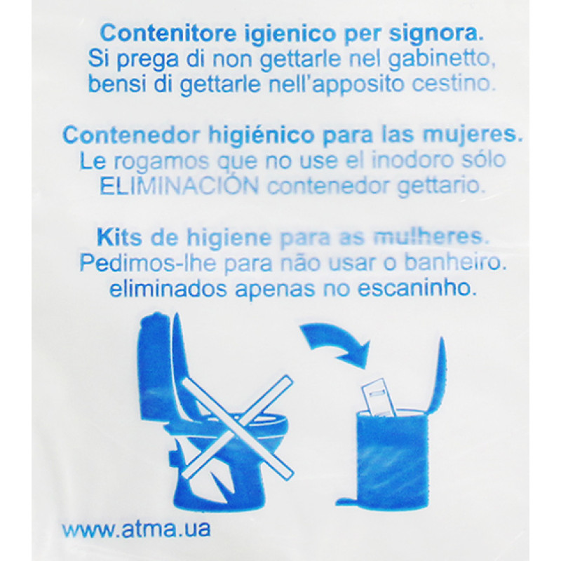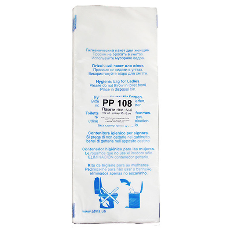 Пакети гігієнічні (поліетиленові) використовуються для зручності утилізації гігієнічних відходів. Мішечки являють собойю поліетиленові пакети, які використовуються за допомогою диспенсера прикріпленого до стіни.