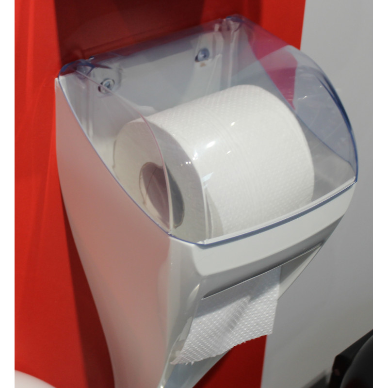 Щітка для унітаза з тримачем туалетного паперу стандартного розміру виготовлена з удароміцного пластику білого кольору. Протягом всього терміну служби колір не змінюється і виріб зберігає свій початковий вигляд. Тип встановлення – настінний. Для заміни рулону достатньо просто відчинити вгору кришку тримача.