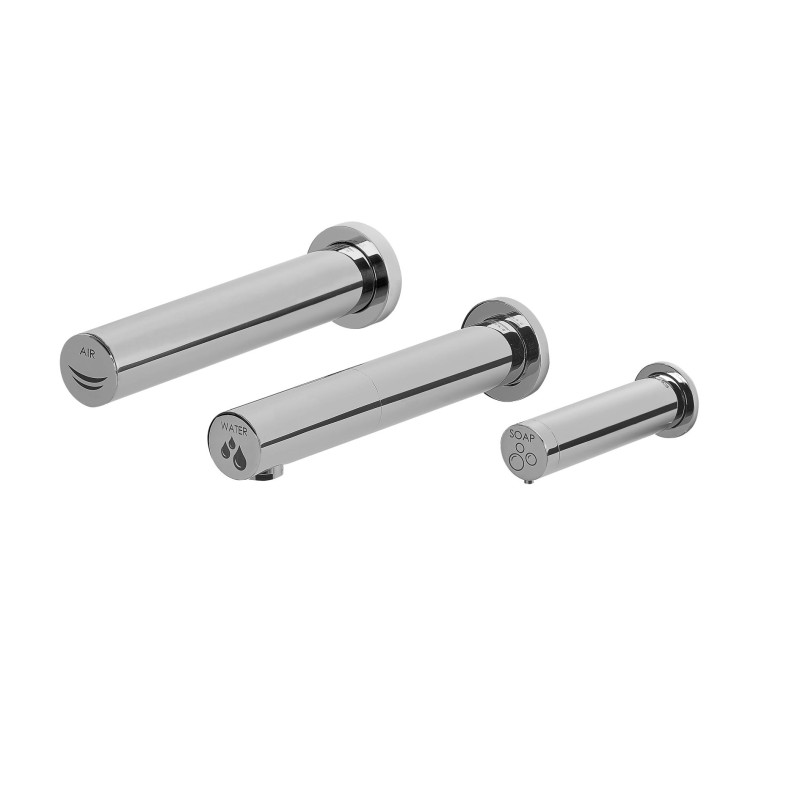 • Mediclinics® All-in-one - це змішувач для сушарки рук, встановлений на стільниці, і кран для подачі води та мила. Всі вони готові до спільної роботи у вигляді єдиної красивої гігієнічної та високоефективної системи, що не потребує дотику.
