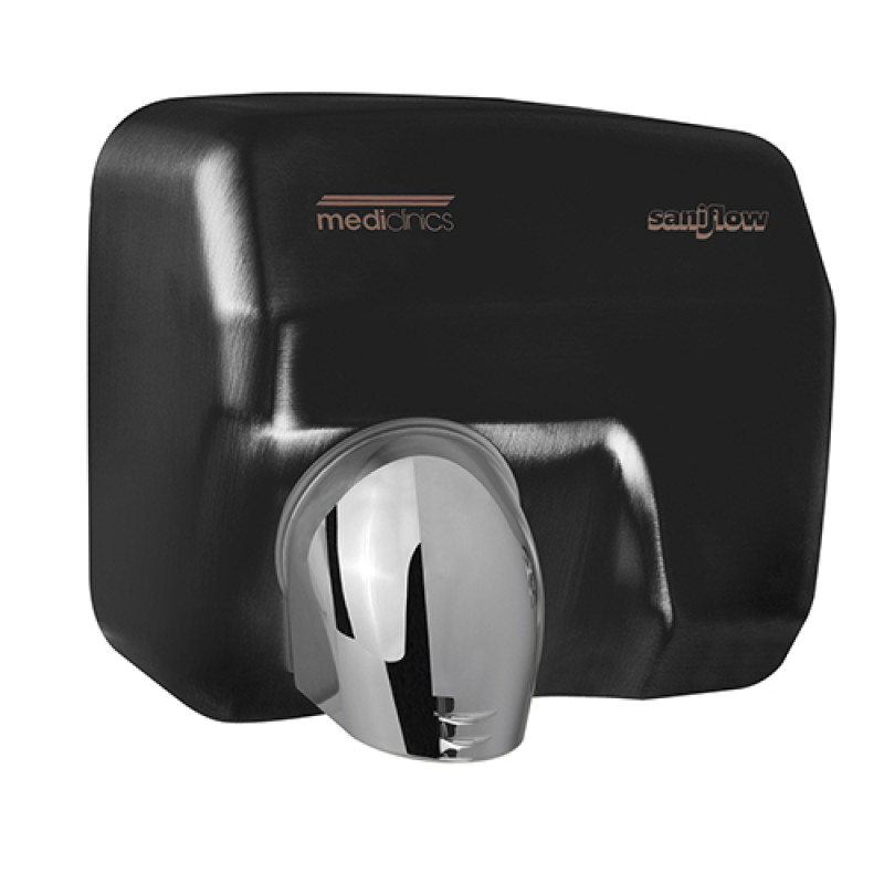 Сушарка Saniflow® – компактний пристрій з антивандальними властивостями та сучасним дизайном. Матеріал - нержавіюча сталь пофарбована в чорний колір.