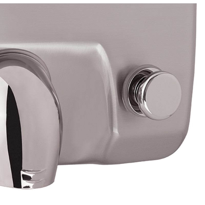 Сушарка для рук Saniflow® з кнопкою вмикання виконана в антивандальному дизайні, що включає стальну кришку, 34-х секундний таймер, захищені болти і монтований збоку нагрівальний елемент, недоступний через повітровипускний отвір, забезпечуючи при цьому високі показники при експлуатації і тривалий термін служби з гарантією на 10 років. Сушарка Saniflow® має особливість дизайну: накінечник що обертається на 360° і кнопка вмикання.
