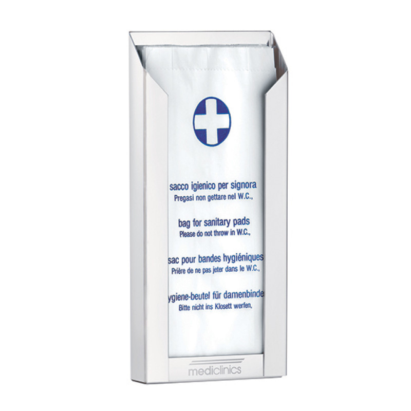 Тримач пакетів гігієнічних SANITARY паперових і поліетиленових - гігієнічне і зручне рішення для туалетної кімнати. Виготовлений з нержавіючої сталі AISI 304 із глянцевим оздобленням.