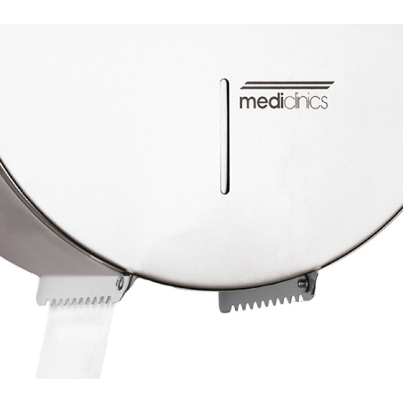 Тримач туалетного паперу INDUSTRIAL для промислових рулонів Джамбо з великим діаметром завдяки якому користувач економить час на обслуговування. Модель корпусу має антивандальні властивості і сучасний дизайн.