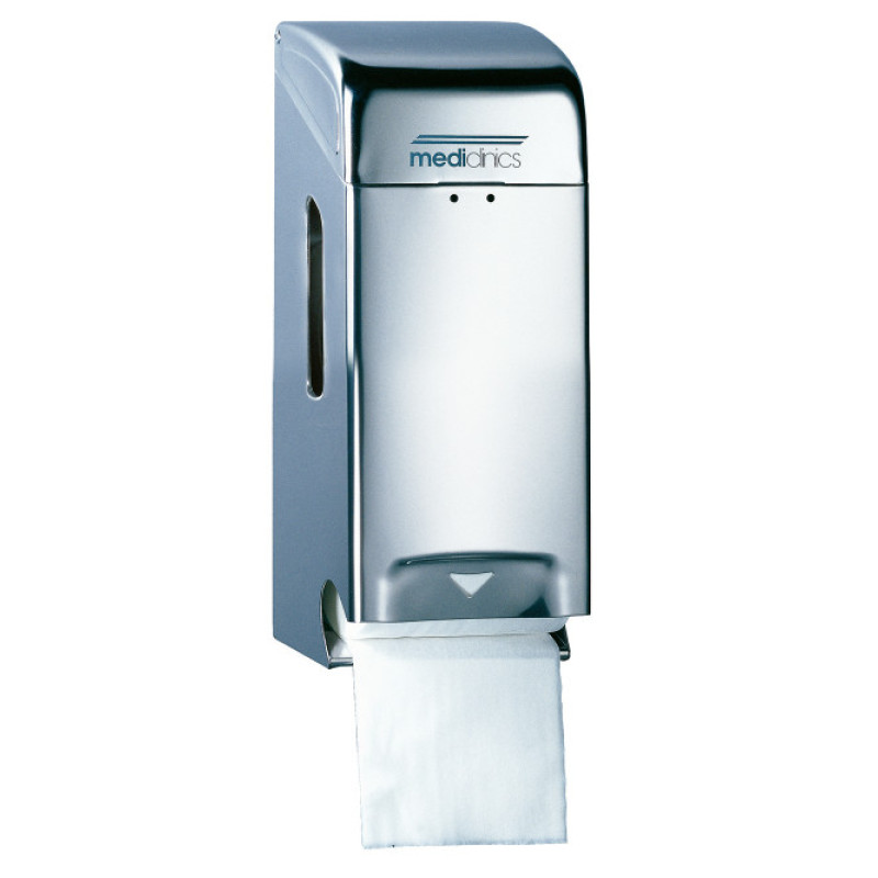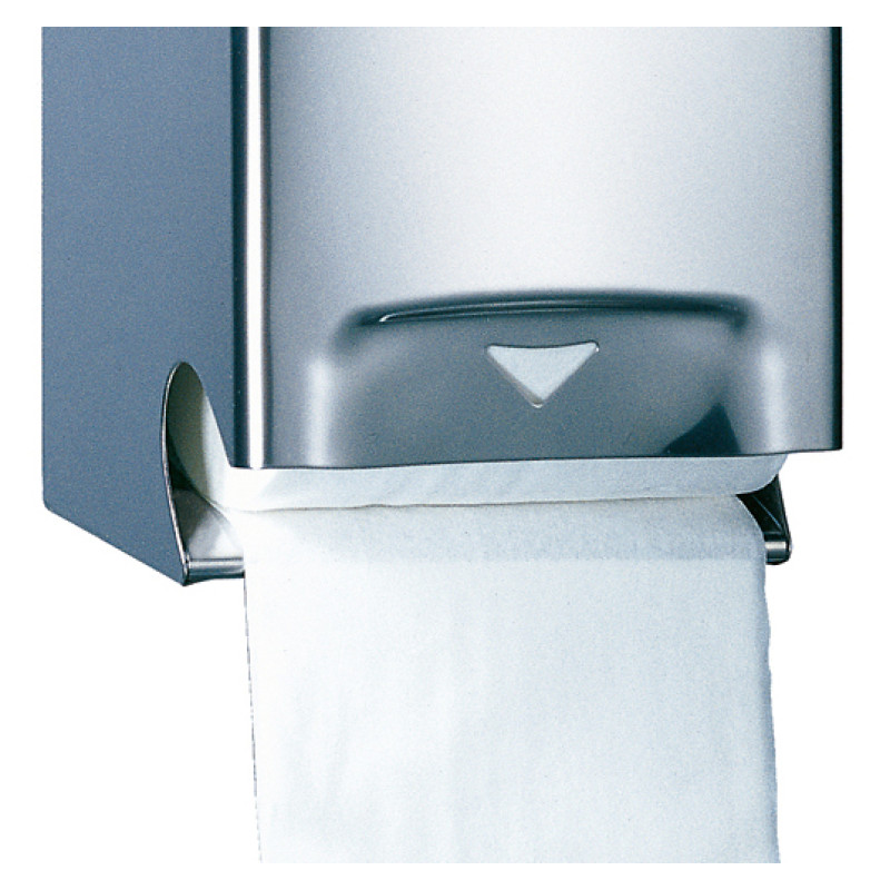 Тримач паперу туалетного стандарт вертикальний преміум класу призначений для використання в офісах, ресторанах, лікарнях. Тип паперу що використовується – в рулоні (з гільзою або без неї). Місткість – 2 рулони діаметром до 125 мм. Кріпиться на стіну. Тримач туалетного паперу виготовлений з високоякісної нержавіючої сталі AISI 304 з глянцевим покриттям. Особливість: антивандальне виконання - корпус виготовлений з цільної металевої заготовки, спеціальний ключ для відкривання корпусу, також всередині корпусу розташована пружина, що забезпечує більш раціональне використання паперу. З боків тримача і на фронтальній частині розташовані вікна для контролю рівня паперу.