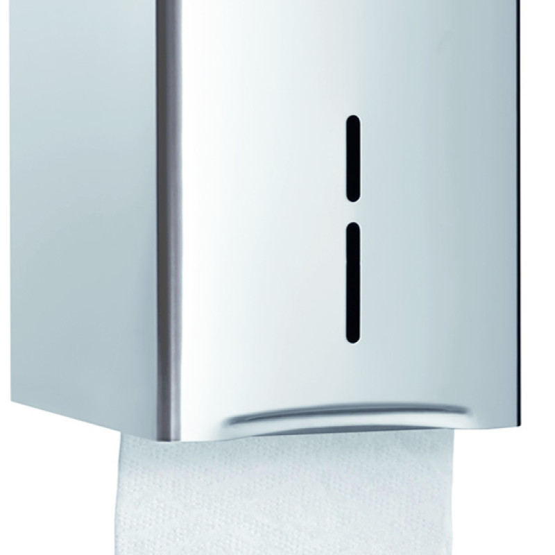 Тримач паперу туалетного в пачках преміум класу має чудовий вигляд у будь-якій туалетній кімнаті. Виготовлений з високоякісної нержавіючої сталі AISI 304 із сатинованим покриттям. Особливість: антивандальне покриття - корпус виготовлений з цільної металевої заготовки, замок безпеки з ключем, крім того, на передній частині моделі є вікно для огляду кількості паперу.