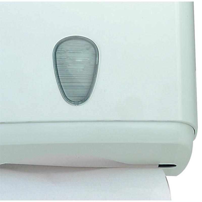 Тримач паперових рушників PLUS має вузький корпус: стильний і компактний. Місткий і надійний, вміщує 2 пачки паперових рушників. Габаритні розміри - 375x280x130 мм. Виготовлений з високоміцного пластику білого кольору. Тип рушників що використовуються – пачки (V-складка). Оглядове вікно у вигляді краплі дозволяє контролювати наявність паперу у диспенсері. Замок розташований зверху для зручності дозаправки витратних матеріалів.