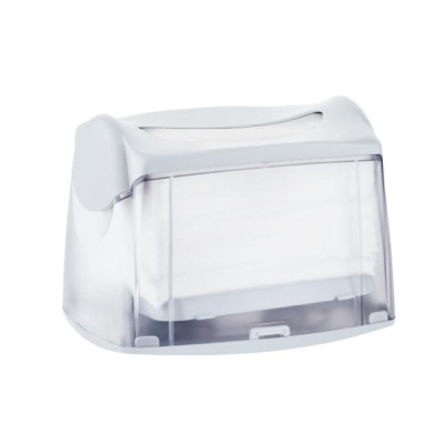 Тримач серветок столових fasto - стильний, сучасний, компактний, привертає увагу відвідувачів. Економічний тримач зменшує витрати серветок на 40 % за рахунок поштучного відбору і, як наслідок, менше сміття і відходів. Виготовлений з удароміцного прозорого пластику. Підходять серветки столові V-складки. Місткість тримача – до 200 серветок розміром 240х164 мм. Прозора кришка дозволяє контролювати рівень заповнення серветками. Протиковзке покриття на дні фіксує тримач на гладенькій поверхні. Є можливість розміщення друкованого рекламного блоку на корпусі, який може використовуватися для акцій в магазині або для створення доходу від оголошень.