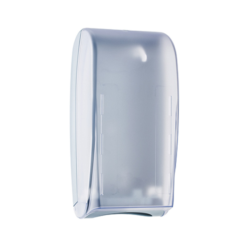 Тримач серветок столових fasto - збільшена місткість тримача скорочує частоту заповнення. Напівпрозора кришка дозволяє контролювати рівень серветок. Протиковзке покриття на дні диспенсера фіксує його на гладенькій поверхні. Можна встановлювати один на інший. Монорейкова система забезпечує рівномірний поштучний відбір серветок. Відкрита фронтальна поверхня дозволяє розміщувати рекламу Вашого підприємства.