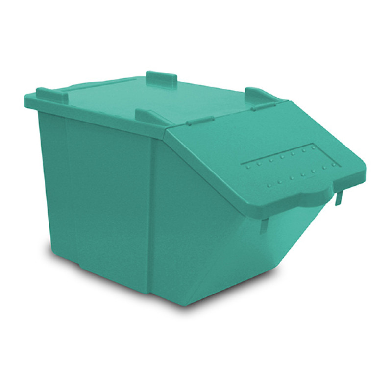 Контейнер (сміттєвий бак) виготовлений з поліпропілену зеленого кольору. Подібні контейнери легко встановлюються один на одного. Добре використовувати для роздільного збору сміття. На кришці є спеціальне місце для розміщення етикетки з видом сміття. Етикетки у комплект не входять. З`ємна кришка дозволяє легко видаляти відходи і швидко очищати сміттєвий бак. Підходять колеса арт. 3484 діаметром 50 мм.
