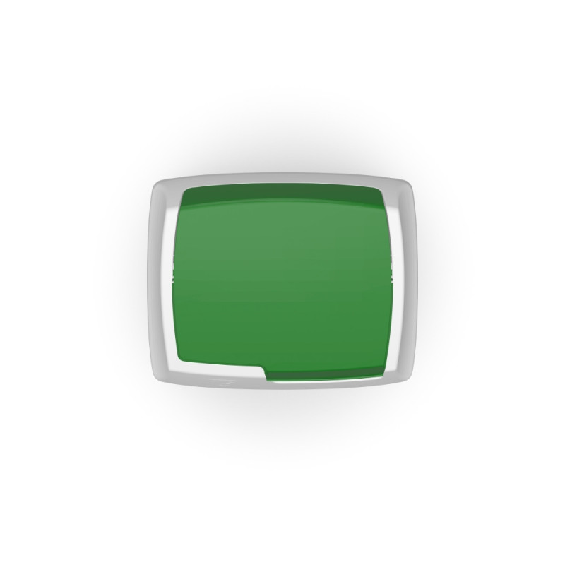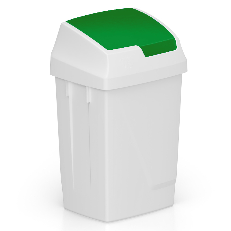 Урна для сміття білого кольору оснащена поворотною кришкою зеленого кольору, яка відкривається натиском руки. Для зручності утилізації сміття верхня частина урни зроблена з`ємною. Різнокольорові кришки полегшують сортування сміття.