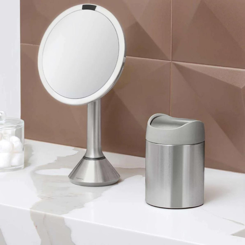 Невелика настільна урна Tabletop виготовлена з нержавіючої сталі сатинової. Збалансована поворотна кришка легко відкривається натиском руки, а потім плавно стає на місце. Легко відкривається для спорожнення. Призначена для зберігання дрібних побутових відходів (використаних пакетиків чаю, ватних тампонів, батарейок).