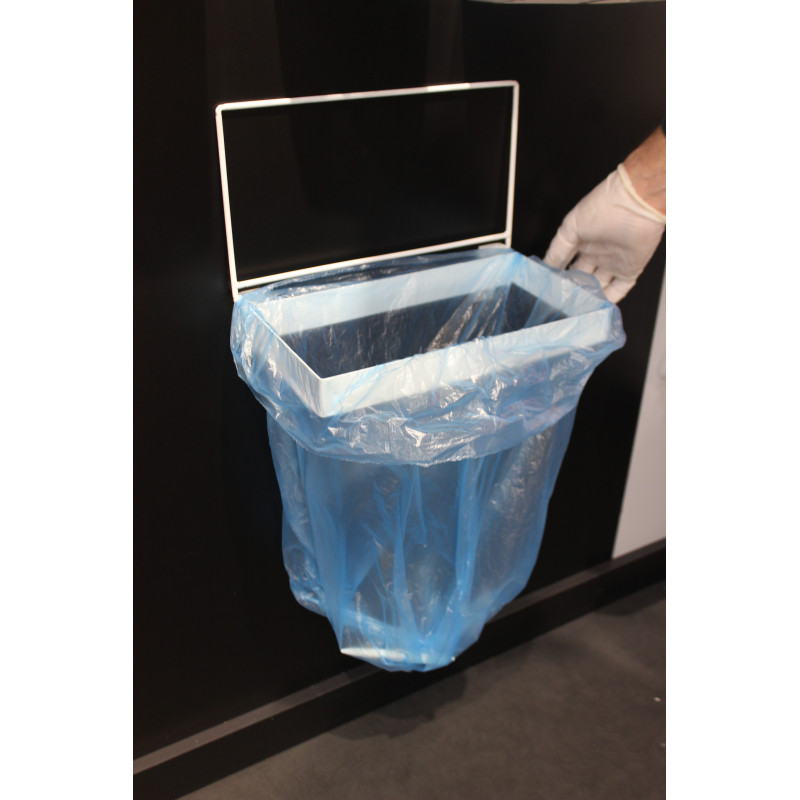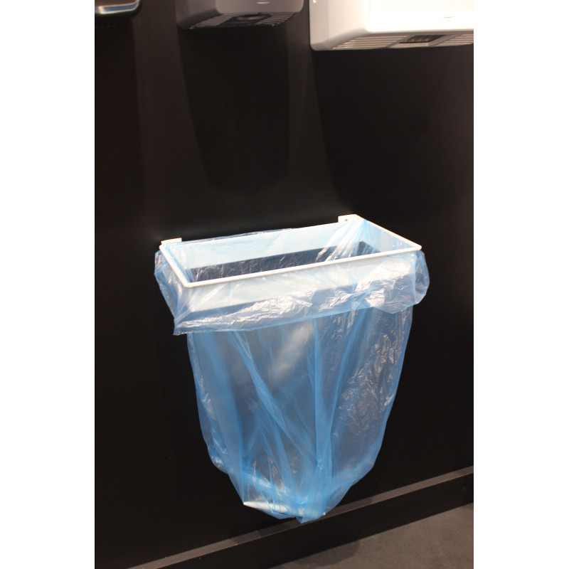 Тримач пакетів для сміття виготовлений з металу та пофарбований білою фарбою. Встановлюється в будь-якому зручному місці. Використовуйте наші поліетиленові пакети об'ємом від 35л.