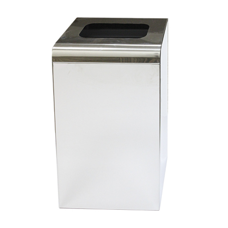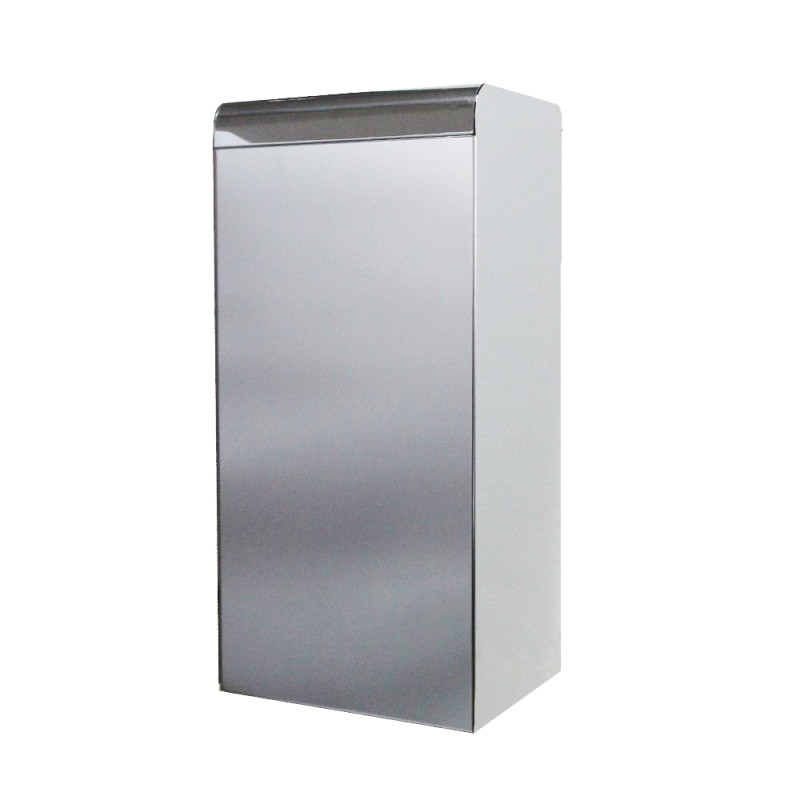 Металева урна виробництва України. Виготовлена із глянцевої нержавіючої сталі. Нез`ємна верхня кришка. Рамка для кріплення мішка. Вікно для сміття 220х120 мм. 4 ніжки на дні урни запобігають ковзанню. Сміттевий пакет в комплект не входить