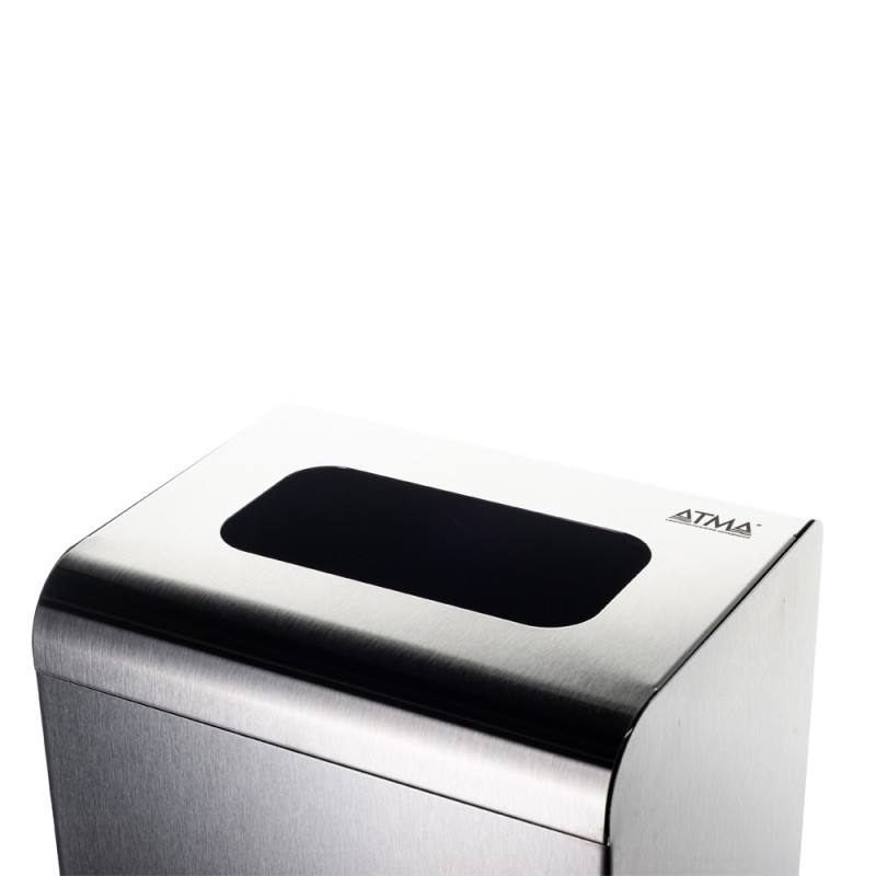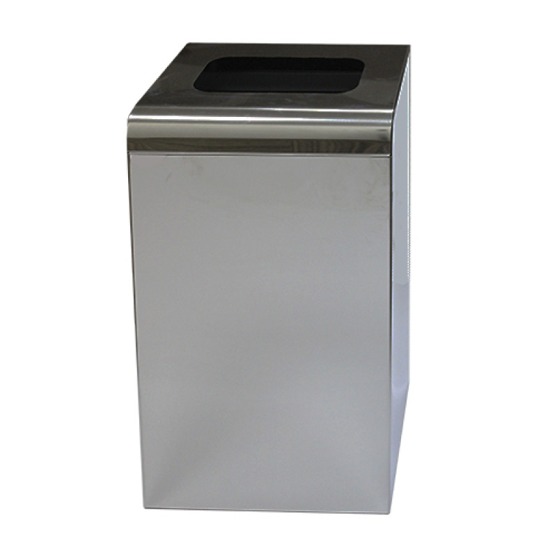 Металева урна виробництва України. Виготовлена із сатинової нержавіючої сталі. Нез`ємна верхня кришка. Рамка для кріплення мішка. Вікно для сміття 220х120 мм. 4 ніжки на дні урни запобігають ковзанню. Сміттевий пакет в комплект не входить