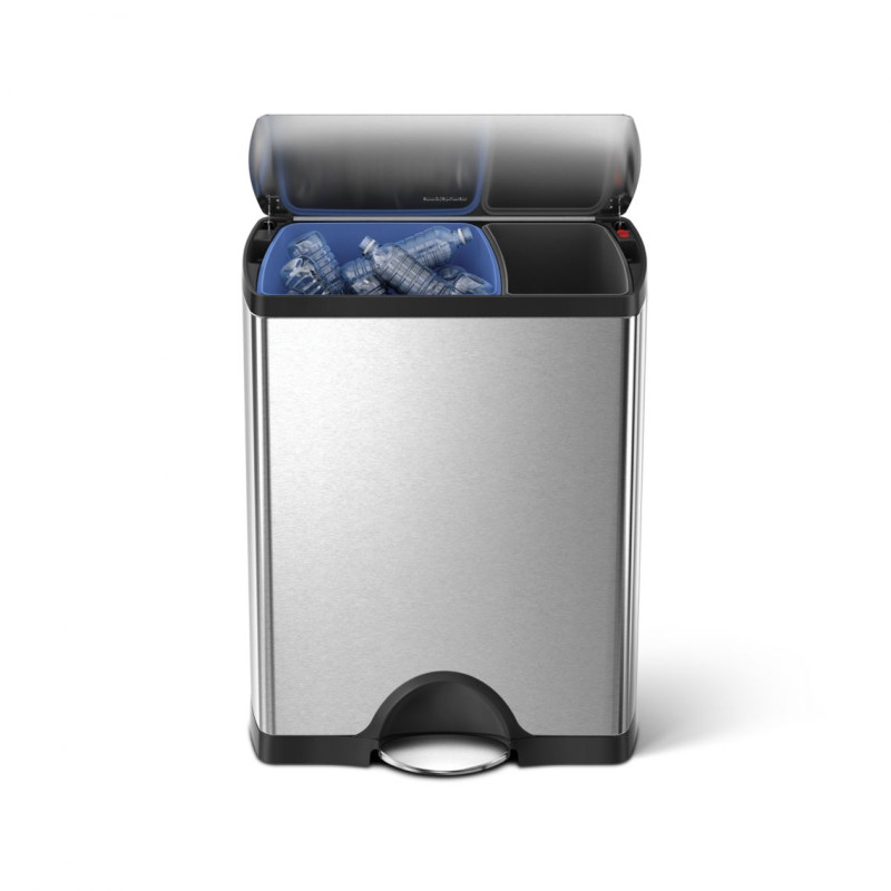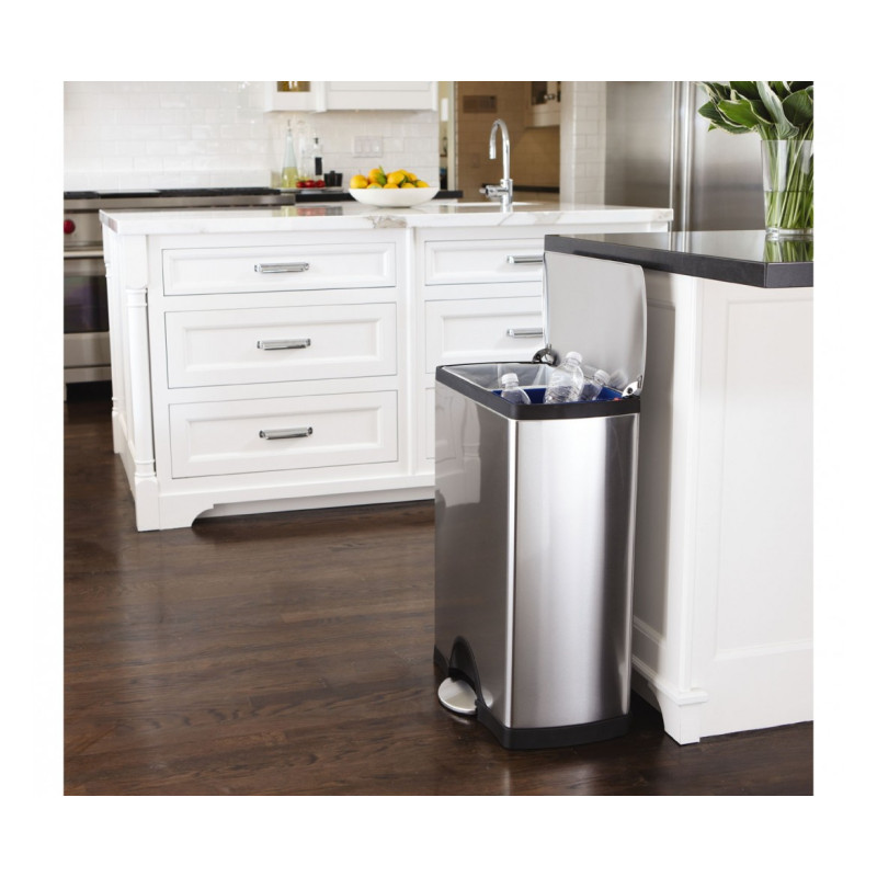Урна чудово підходить для ванних кімнат, інноваційна конструкція кришки метелика, яка відчиняється з центра вгору з малою кришкою. Тонка, економна за площею форма ідеально підходить для обмеженого простору. Сильна сталева педаль і запатентована технологія shox кришки забезпечують можливість працювати плавно і тихо протягом багатьох років. Покриття FPP не залишає відбитків на поверхні. Підходять мішки з кодом H та кодом V.