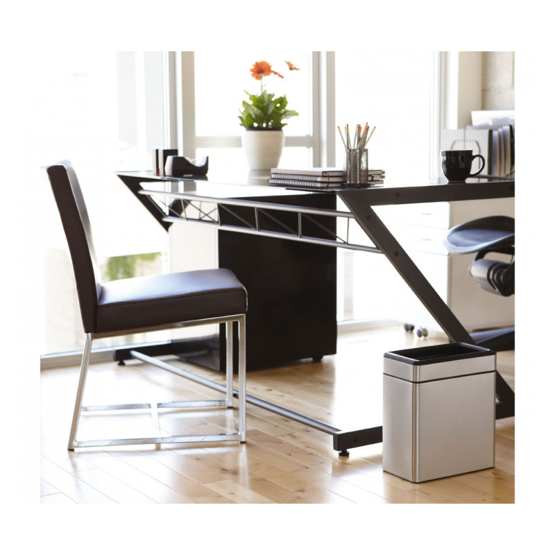 Маленька та елегантна компактна урна виготовлена з нержавіючої сатинової сталі. Ідеальна для розміщення у ванній кімнаті або під столом в офісі. ВІдкидний обід і внутрішнє пластикове відро дозволяють швидко і легко замінити сміттєвий пакет. Відро має акуратний вигляд, так як обід приховує сміттєвий мішок. Підходить мішок з кодом R